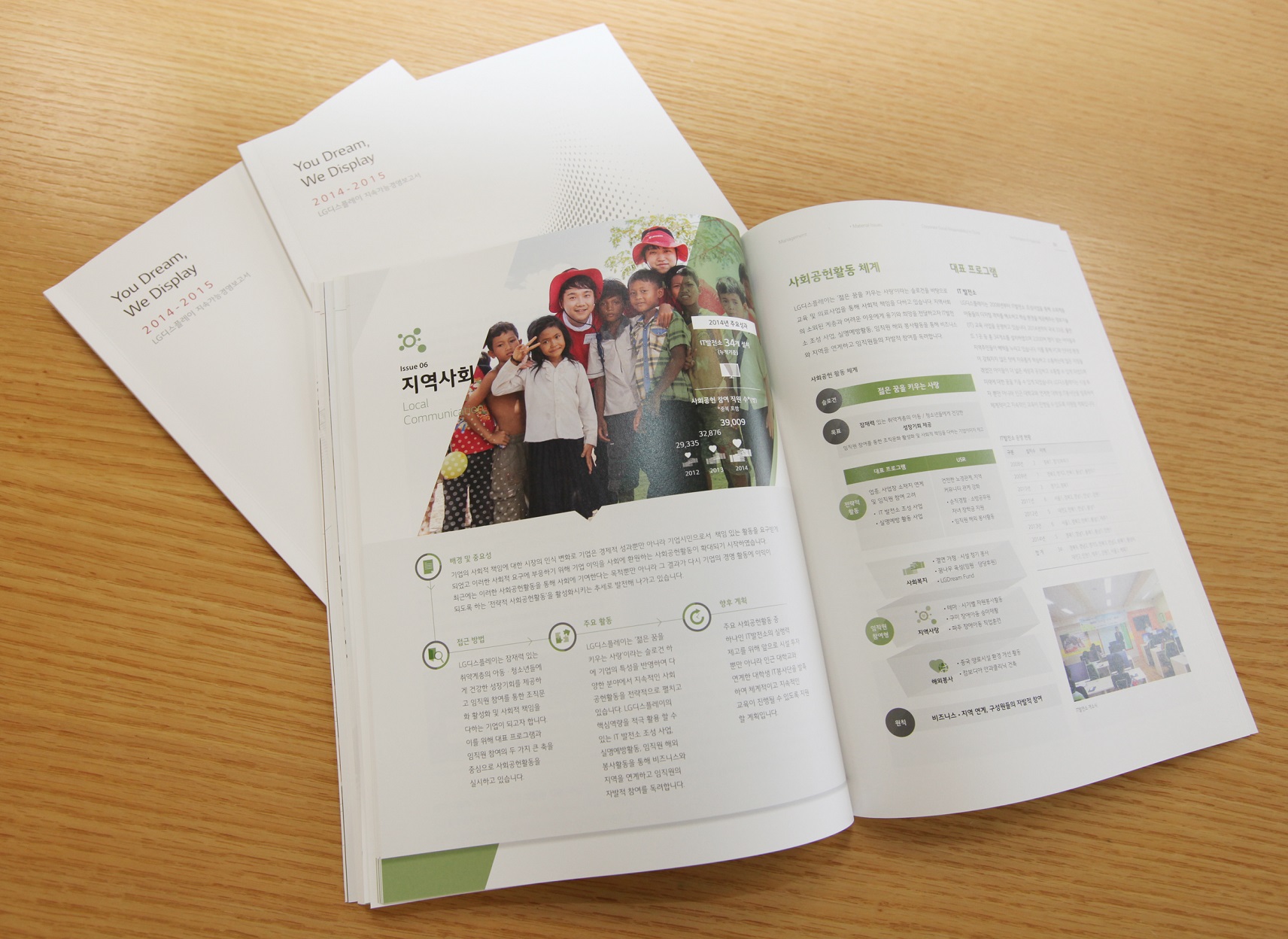 LG디스플레이(대표이사 사장 한상범, 韓相範 / www.lgdisplay.com)가 지속가능경영 활동과 성과를 담은 ‘2014-2015 지속가능경영보고서’를 국·영·중문 3개 언어 버전으로 발간한다고 9일 밝혔다.
