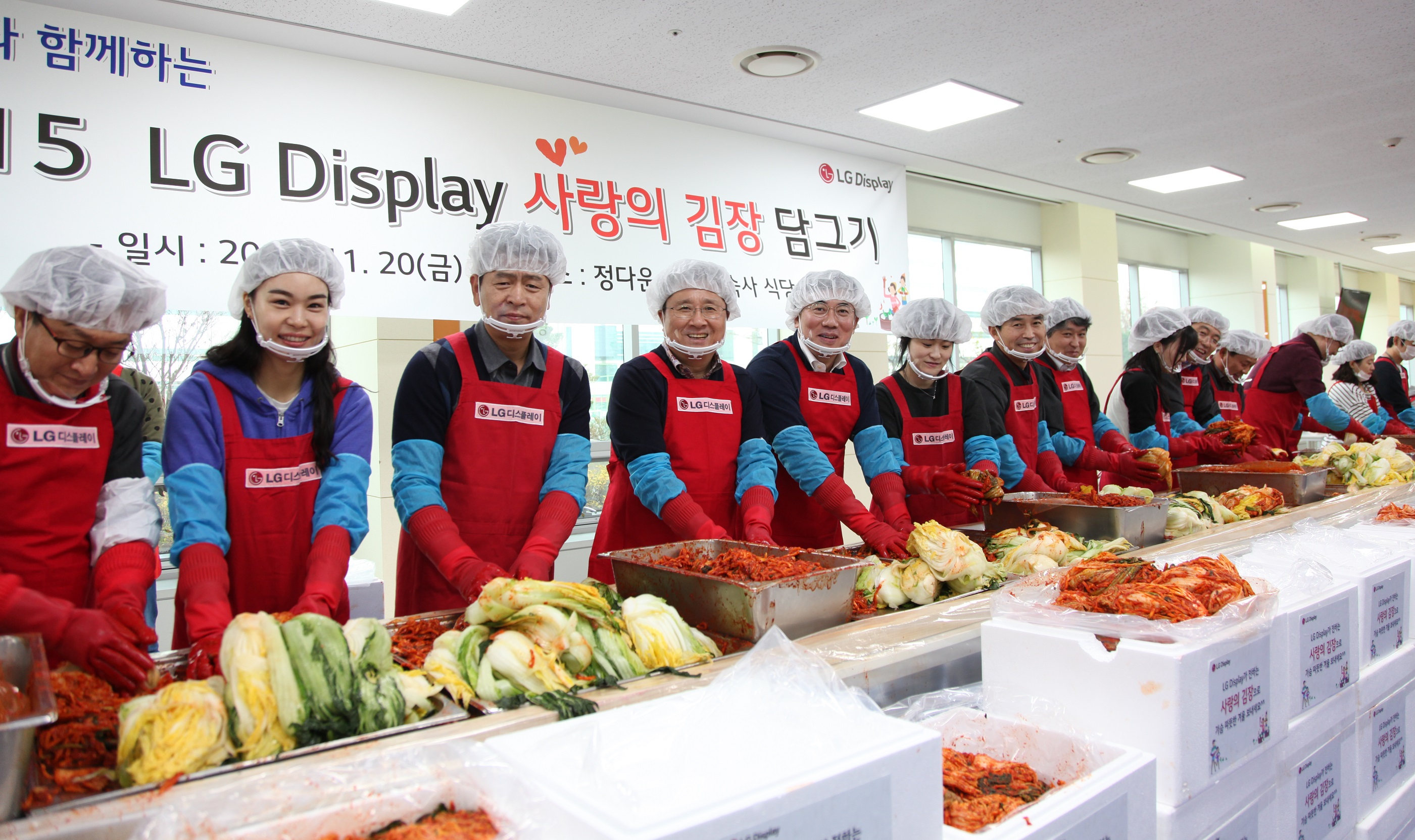 LG디스플레이 한상범 대표는 “우리 주변의 어려운 이웃들이 추운 겨울을 나는 데 임직원들이 직접 담근 김치가 조금이나마 도움이 되었으면 한다”며 “LG디스플레이는 지역사회의 소외된 계층과 어려운 이웃에게 용기와 희망을 전달하는 기업으로서 책임을 다하겠다”고 말했다.